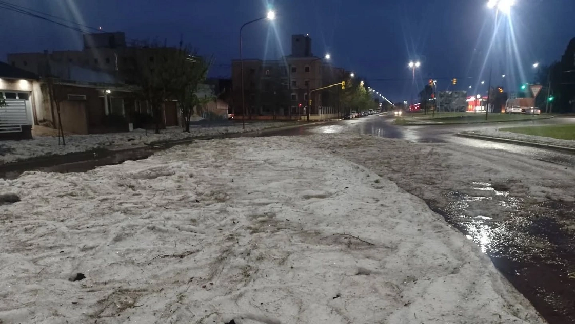«A la tarde vamos a tener que tener en cuenta el viento porque se puede organizar una línea de tormenta y avanzar», expresó Baraldi, al mismo tiempo que mostraba los «ríos de granizo» que se habían formado en algunas calles de Toay.
