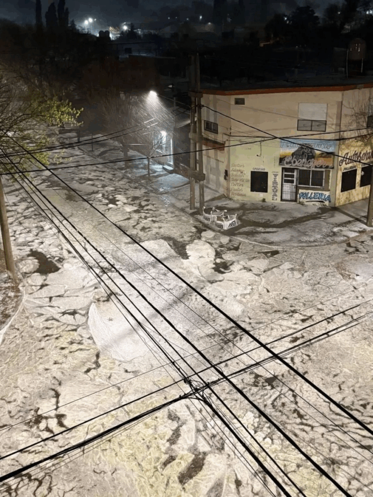 Uno de los videos subidos por el especialista a su perfil muestra a una persona dando cuenta de la dimensión del fenómeno meteorológico. «La altura del hielo es de 50 cm. Me llega hasta la rodilla.Todo hielo, la parte de arriba de las casas. Es una locura», se lo escucha decir, al mismo tiempo que muestra cómo quedó un automóvil que estaba estacionado.